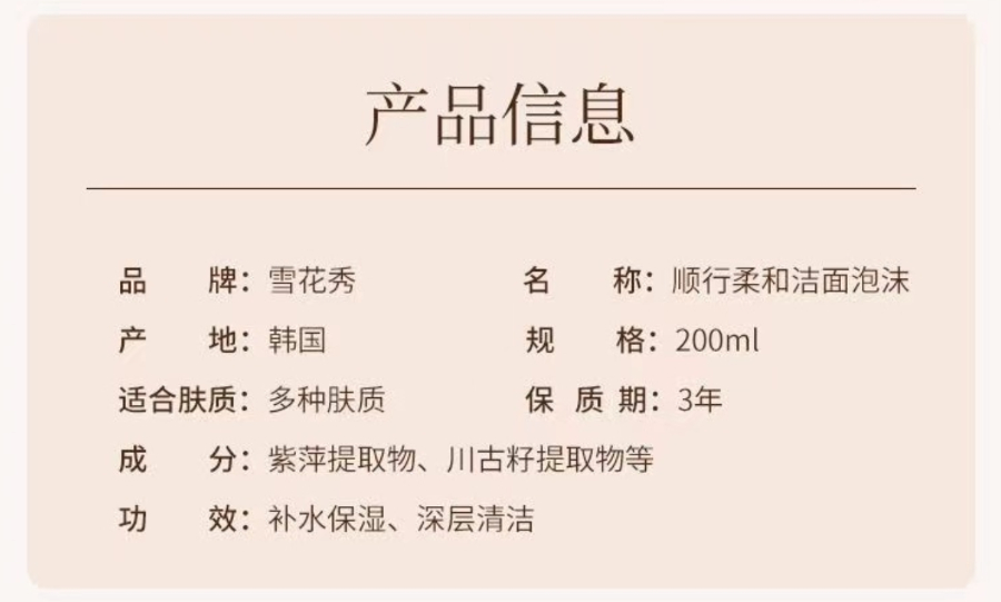 雪花秀顺行柔和洁颜泡沫200ml【新旧版本随机发】
