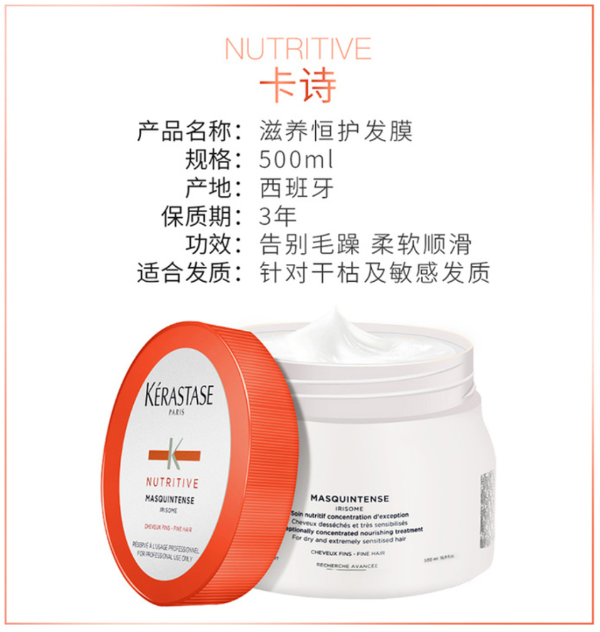 适合中度干性发质KERASTASE/卡诗 滋养恒护发膜500ml 海淘团购_海淘网