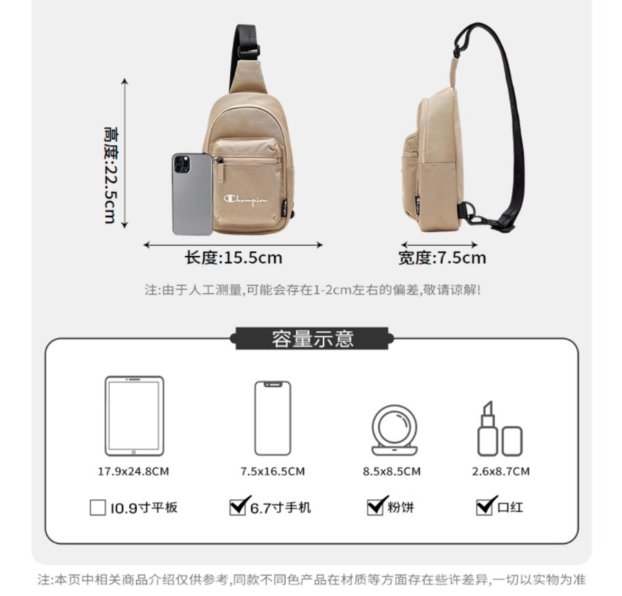 Champion冠军 休闲胸包U5CACPU24F2浅卡色
