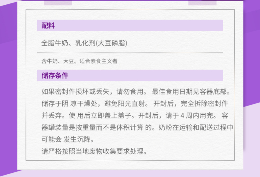 澳洲A2 全脂高钙高蛋白儿童学生成人奶粉紫吨吨900g