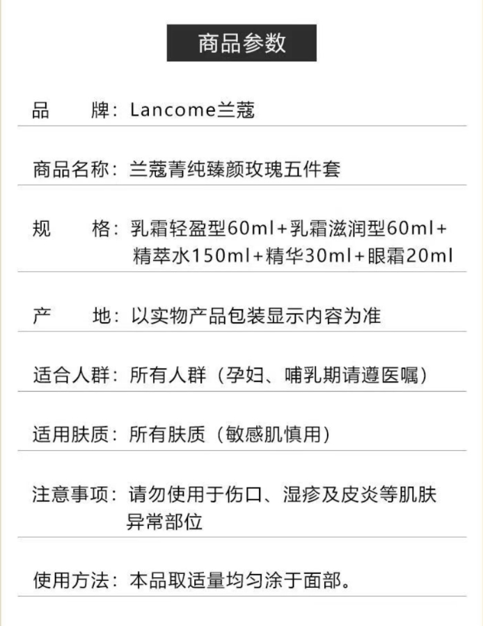 LANCOME/兰蔻菁纯五件套 清爽面霜60ml+滋润面霜60ml+眼霜20ml+精粹水150ml+精华30ml