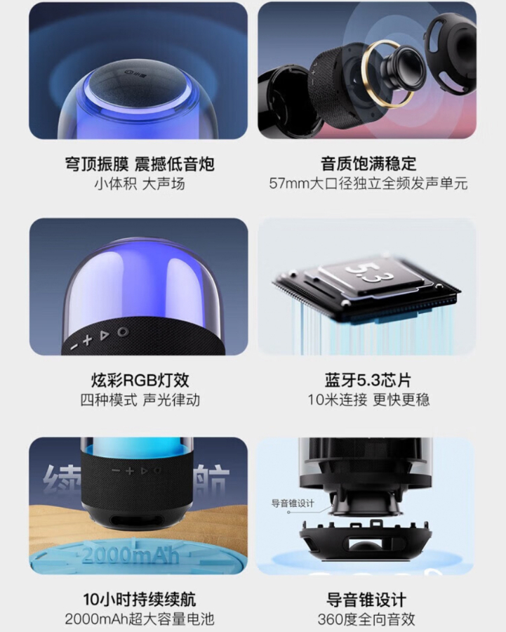 无线蓝牙电脑音响 重低音炮 防水防尘户外便携 迷你音响家庭ktv 长续航 AI一键唤醒丨炫彩RGB音